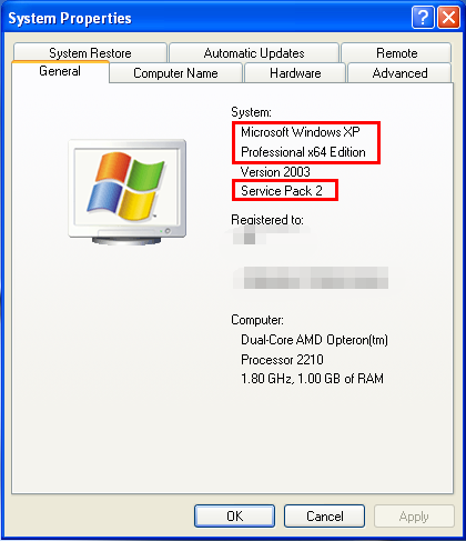 Before you donwload the file, please confirm the Operating System is: Windows XP Professional x64 Service Pack2, as image below: