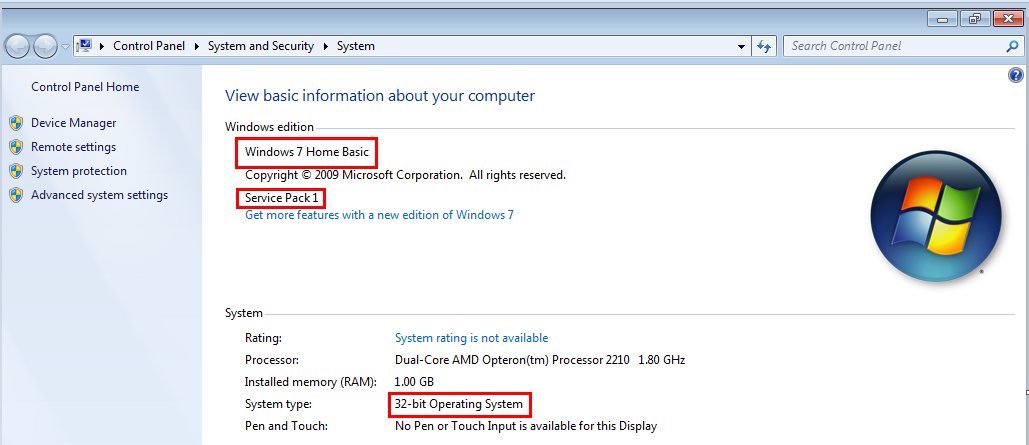 Before you donwload the file, please confirm the Operating System is: Windows 7 Home Basic x32 Service Pack1, as image below: